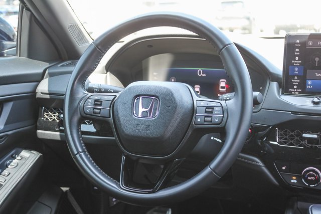 The 2025 Honda Accord Hybrid Sport is a remarkable vehicle that combines efficiency, safety, and advanced technology to elevate your driving experience. This hybrid powerhouse is equipped with a robust 2L I-4 gasoline direct injection engine, delivering a commendable 146 horsepower coupled with a Continuously Variable Transmission CVT. The Accord Hybrid Sport not only offers excellent fuel efficiency but also boasts a suite of top-tier features designed to enhance safety and comfort.One of the standout features of the 2025 Honda Accord Hybrid Sport is the **Adaptive cruise control with traffic stop-go**. This innovative system allows drivers to set their desired speed while automatically adjusting to maintain a safe distance from the vehicle ahead, even bringing the car to a complete stop in heavy traffic. This functionality significantly reduces driver stress during long commutes and road trips.Safety is paramount, and the Accord Hybrid Sport does not disappoint. The **Forward collision mitigation** system is a game changer, detecting potential collisions and preparing to take action to reduce impact severity, while the **Front pedestrian impact prevention** feature actively monitors for pedestrians, ensuring you have an extra layer of protection on the road. Additionally, the **Lane departure prevention** system helps keep you centered in your lane, minimizing the risk of unintended lane changes.For tech-savvy drivers, the **Mobile hotspot** feature transforms your vehicle into a Wi-Fi zone, allowing you to stay connected on the go without relying on your mobile data. The **Rear camera** provides enhanced visibility of obstacles behind you, making parking and reversing safer and easier.The **Hands-on steering assist/lane centering** feature offers an intuitive driving experience by helping maintain your lane with minimal input. This system requires you to keep your hands on the wheel, ensuring you remain engaged while driving.Moreover, the **Brake assist** technology further enhances safety by providing additional stopping power during emergency situations, while **Cruise control with steering wheel mounted controls** simplifies highway driving, allowing you to maintain your desired speed effortlessly.In conclusion, the 2025 Honda Accord Hybrid Sport is a perfect blend of performance, safety, and cutting-edge technology, making it an excellent choice for eco-conscious drivers looking for a reliable and feature-rich vehicle. With its comprehensive safety features and advanced driving aids, the Accord Hybrid Sport is poised to make every journey enjoyable and secure.We want your trade in, even if you don't buy our vehicle. Call us today for a complimentary appraisal or Kelly Blue Book Instant Cash Offer.